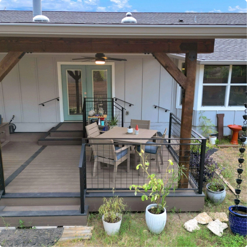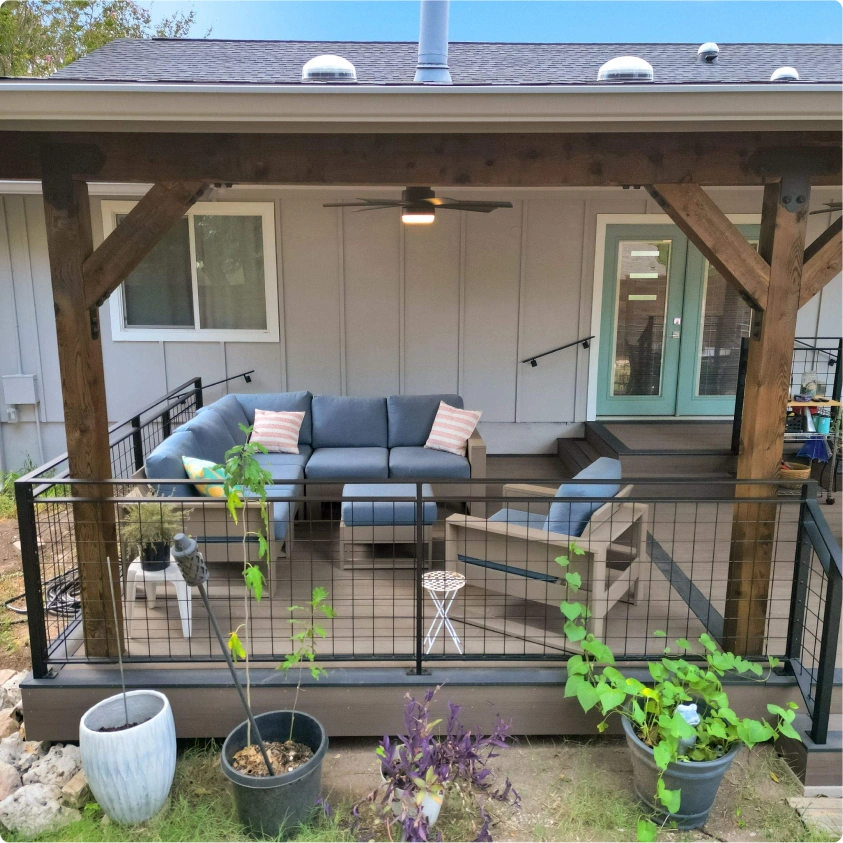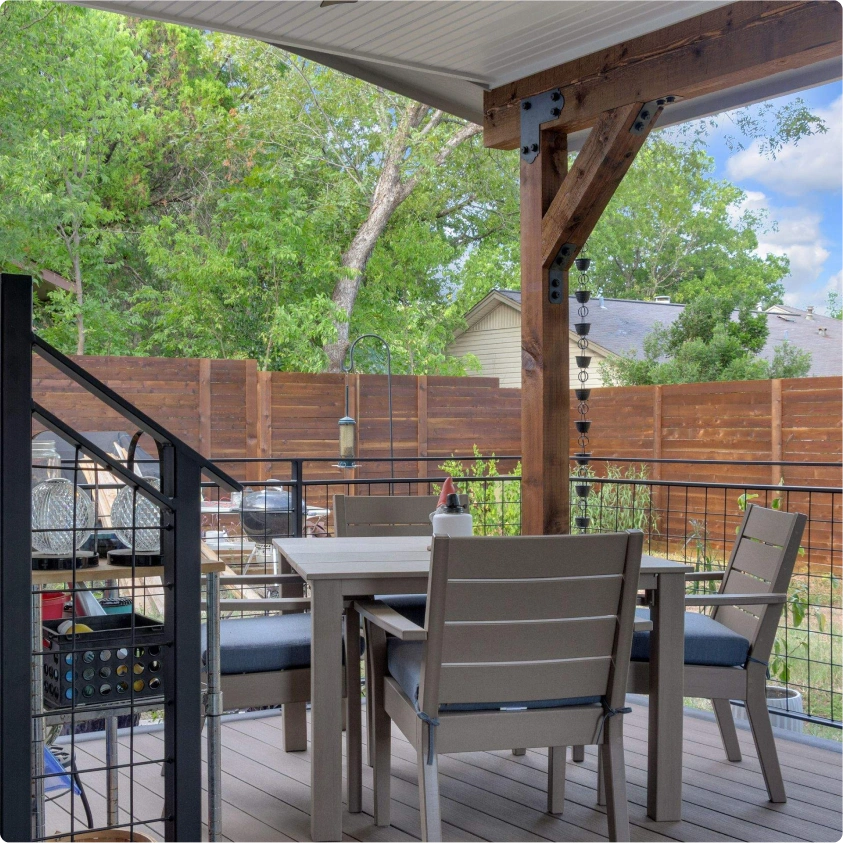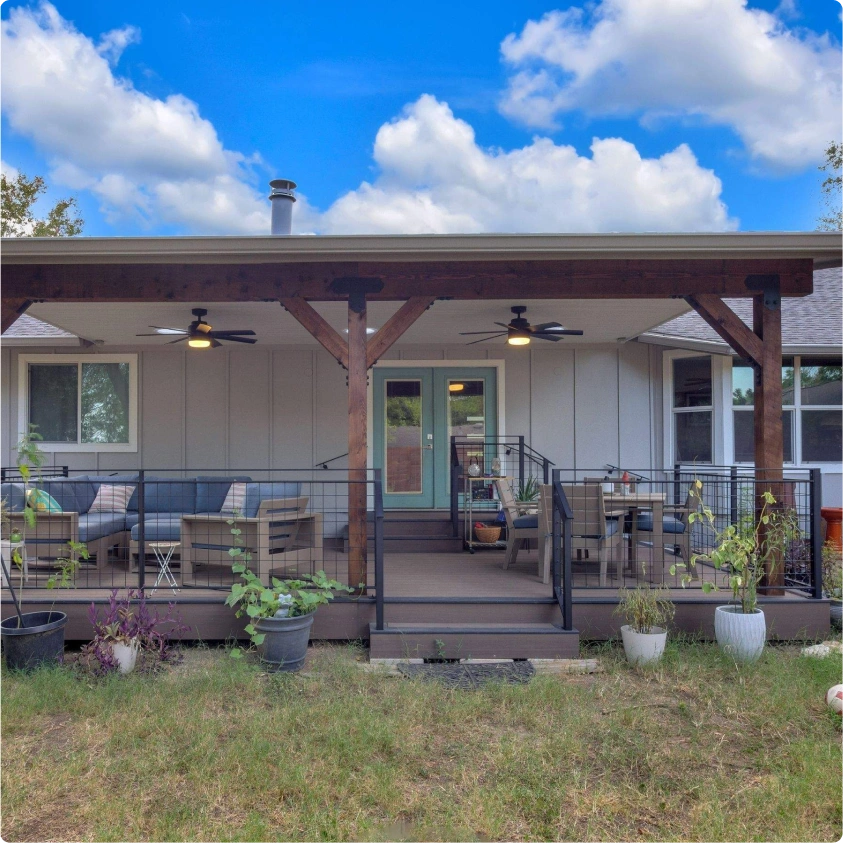 What began as a small, weathered deck and a metal gazebo that trapped heat under the Texas sun was far from inviting.